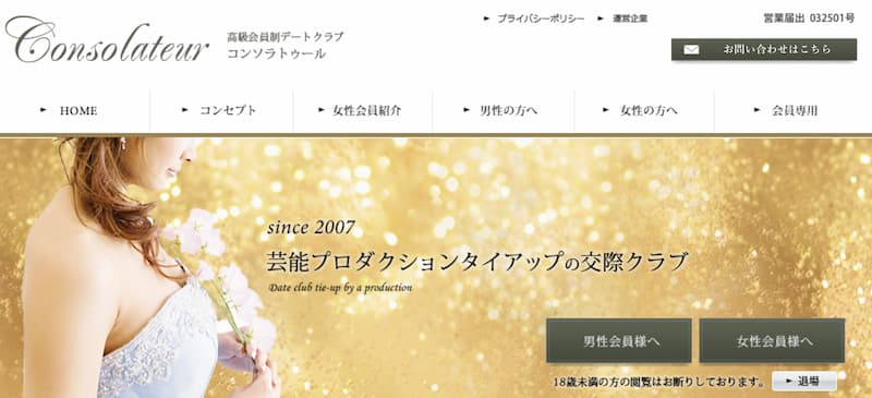 東京・横浜・名古屋・大阪・福岡・札幌・など全国主要6都市を中心、に他全国エリアに展開しており出張の際にも利用する会員が多数!ハイクラス向けの交際クラブを探している方にはピッタリです!